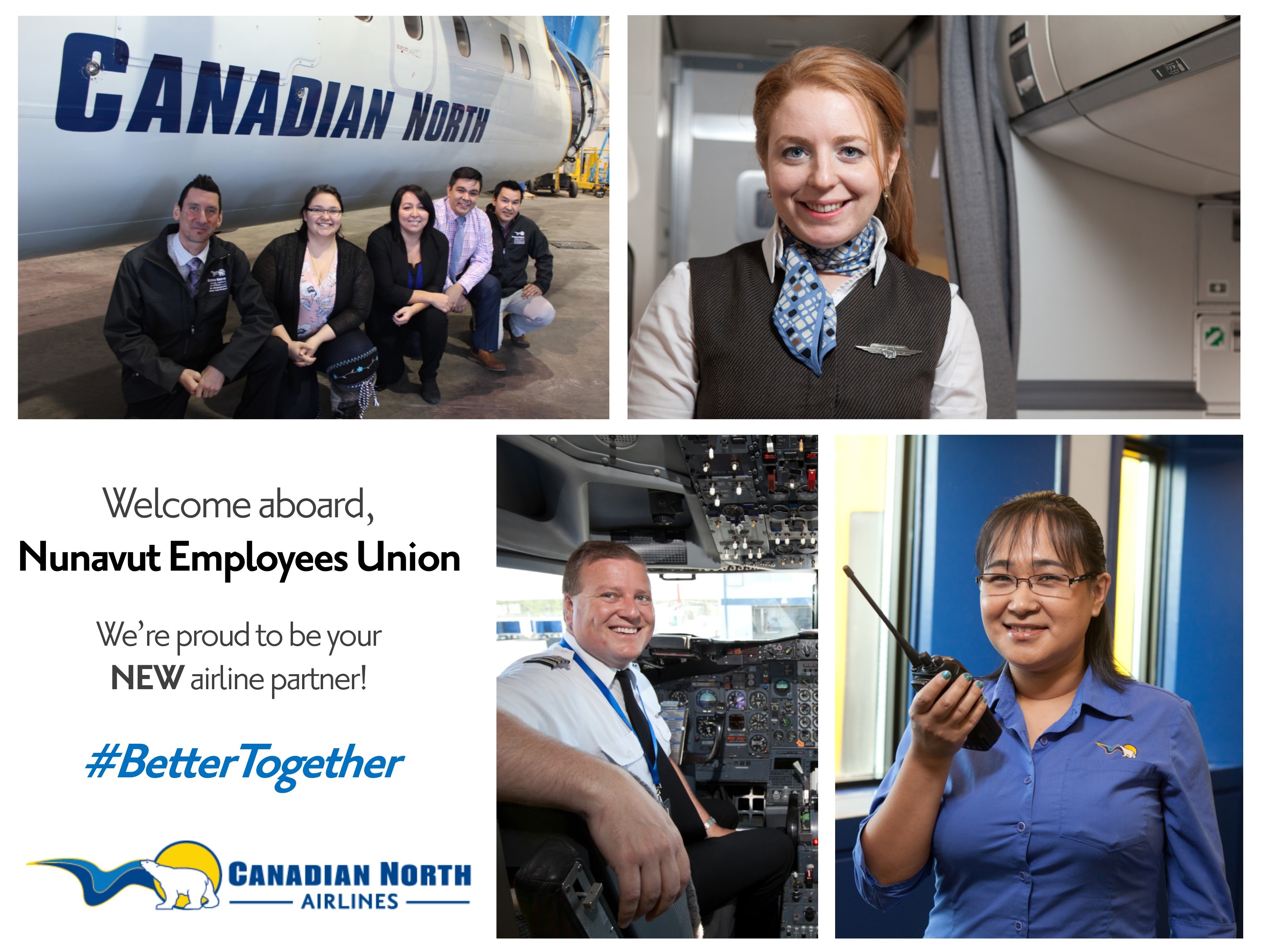 NEU Members with a signed NEU Membership Card will be able to fly at a special, negotiated rate each time they travel with Canadian North. Canadian North joins Calm Air (for Members in the Kivalliq Region) in providing NEU Members with a special discount when they fly. Members and their immediate families will have the opportunity to earn both Aurora Rewards points AND Aeroplan Miles each time they travel with Canadian North. Members will need to contact the NEU by email (reception@neu.ca) or telephone (867.979.4209 or toll free at 877.243.4424) to get the NEU/Canadian Northern booking code. See the press release below for more on this exciting new partnership and its benefits for Members and their immediate families.